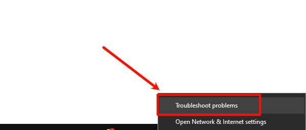 Right-click the network icon on the right side of the taskbar and select "Troubleshoot problems".