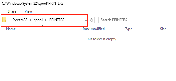 Open File Explorer and go to the path: C:\Windows\System32\spool\PRINTERS