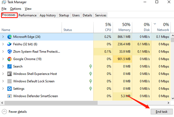 - In the Task Manager, look for programs that are using a lot of resources, like high CPU or memory usage.