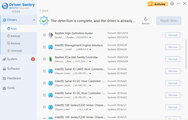 Outdated or corrupted sound card drivers are a common cause of no sound. In order to help you quickly determine whether there is an abnormal sound card driver, we recommend that you can directly through "Driver Sentry" to scan and update the old version of the driver, including the sound card driver.